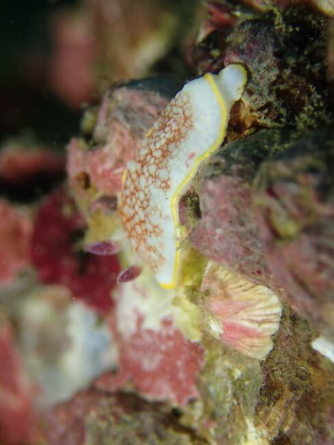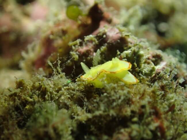 ウミウシは少ないながら黄色のきれいなミツイラメリウミウシを観察。