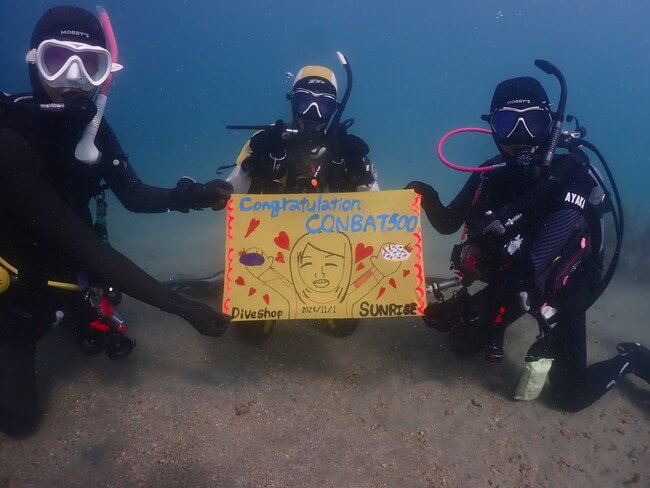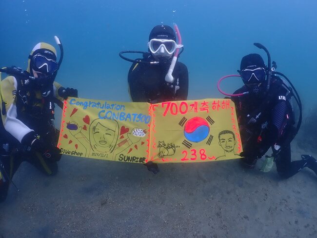 僕も700本、酸いも甘いも楽しいも悔しいも、いろんなダイビングの、その95%以上をサンライズで潜って、また一つ楽しい思い出ができました。