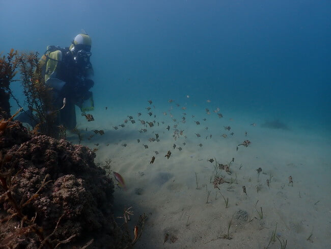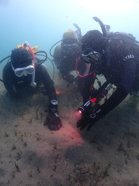 お祝いの儀を終えたらキレイなアマモ場を泳ぎ…