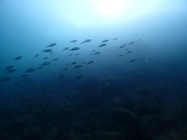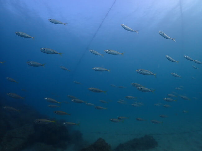 透明度が高いのでアジの群れもキラキラ綺麗。