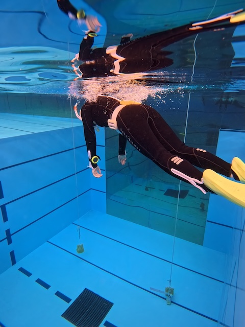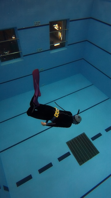 普通とは違うフィンの動かしや、酸素を使わないヘッドファースト方法、