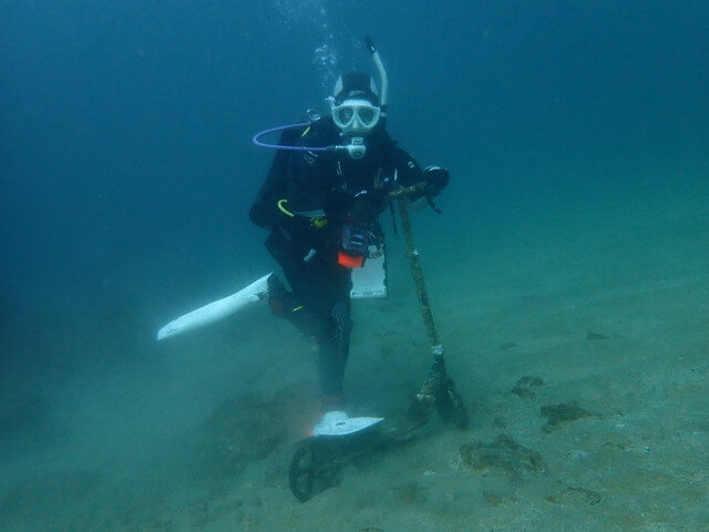 前田さんくらい海に潜っていると、海の中でもキックボードに乗れるようになるんですね。