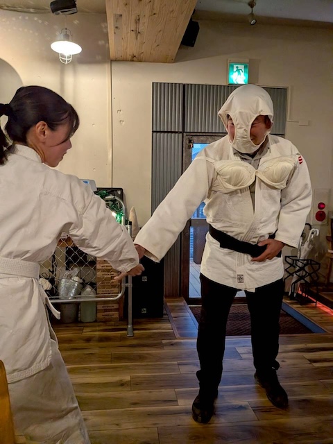 叫んでいたところ、合気道五級のこまりが片手取り四方投げ!