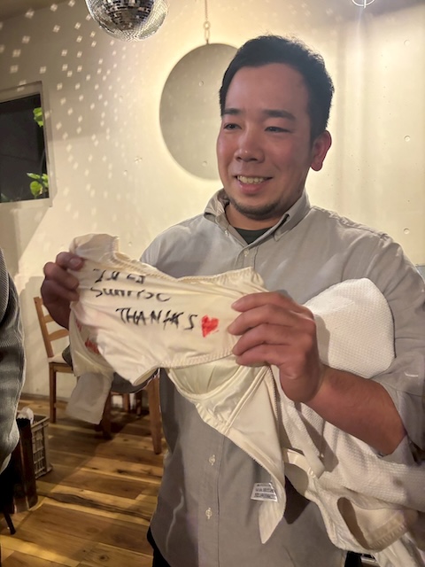 おっぱいの大きい女性から、パンツにサインをして差し上げましたら、