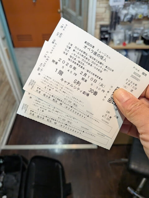 長文の心温まる手紙と共にオペラ座の怪人のチケット頂きました。