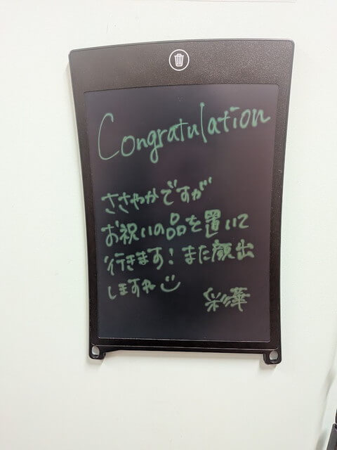 お祝いの一番乗りはサンライズの創業当初15年前からサンライズに来てくれている岡山在住のDMササショウでした。