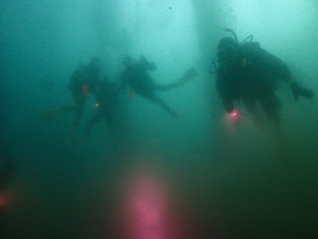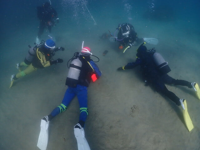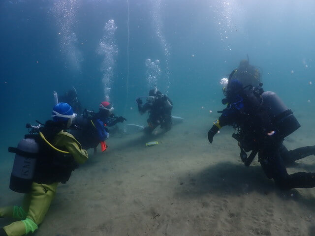 レンタルスーツでも自前のスーツでのドライスーツの取り扱いは同じなので、みんなで一緒にワイワイ潜ってドライスーツ講習。