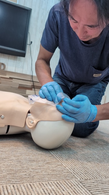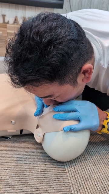 レスキュー呼吸も、現役の救命救急医師通りにやってみます。