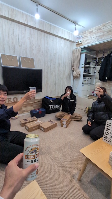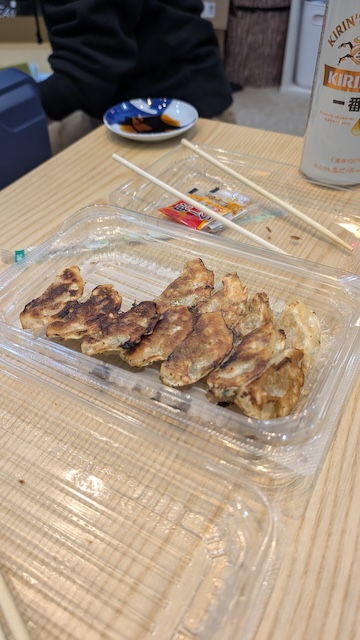 お土産に、ニノニの餃子とビールを買ってきてくれました。