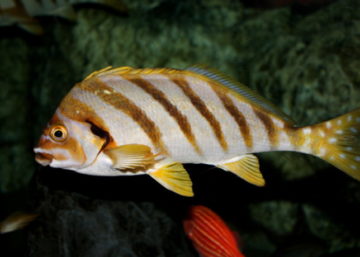 オスのイシダイは歳を取ると、口が黒くなって「クチグロ」呼ばれ、イシガキダイが歳を取ると、「クチジロ」と呼ばれる。