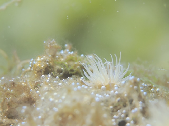 海藻の上では、酸素の気泡が出てくるところを観察。
