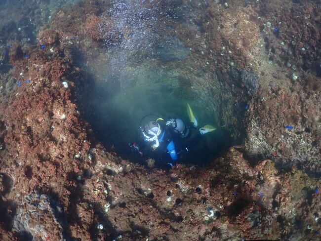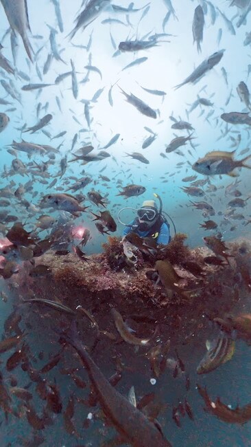 ブリの群れ見て、水深31mのケーブを2回くぐってきたそう。