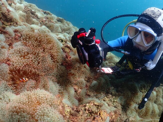私とコマリちゃんは2本目の馬渡島では深場に行かずに浅場でフォト講習することに。