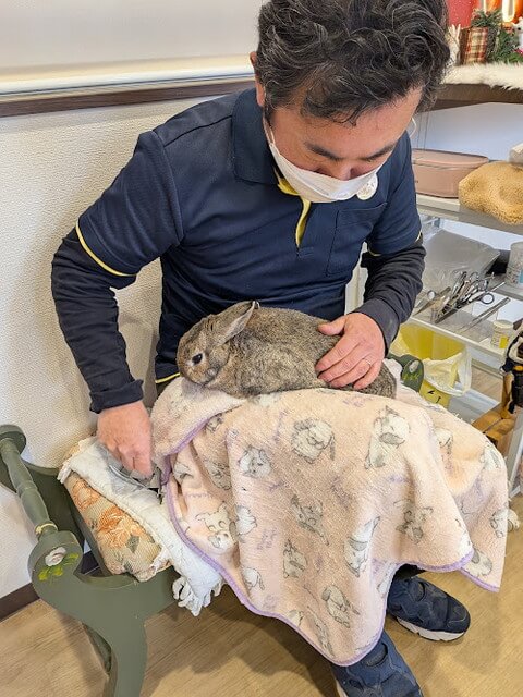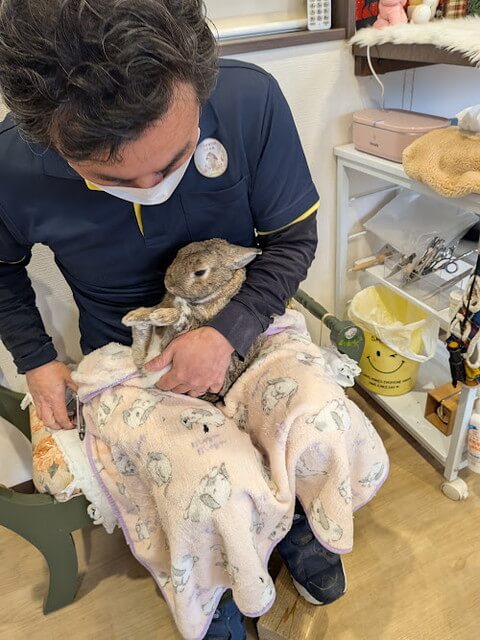 長崎出身のミニウサギで、生後半年から何の因果か福岡天神のダイビングショップに常駐することになりました。