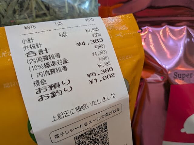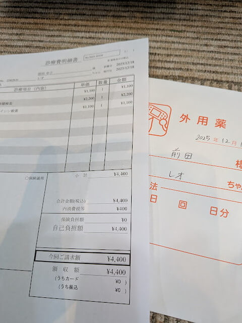 病院代と爪切りとグルーミングとペレットとおやつで8783円。