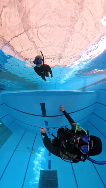 🤿 ドライスーツの夫婦がホバリング 🤿 ドライスーツの夫婦がホバリング練習! ホバリング前には、スーツ内の空気を正しく移動させる必要があります💨