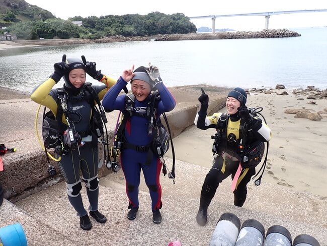 そう、この日はこちらの4名はそのまま辰ノ口にお泊りしての合宿ダイビング。