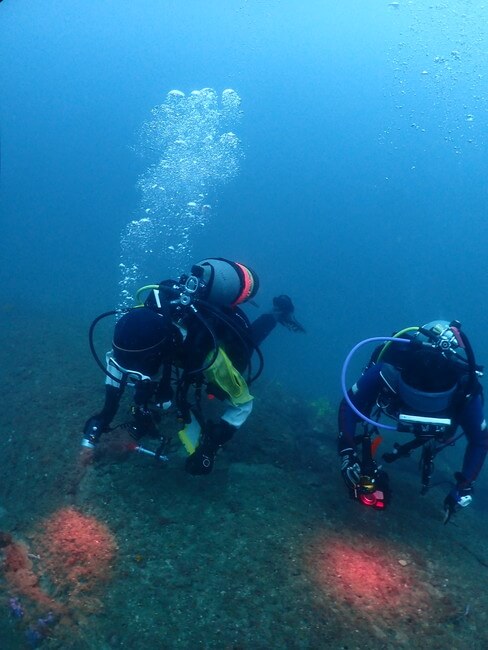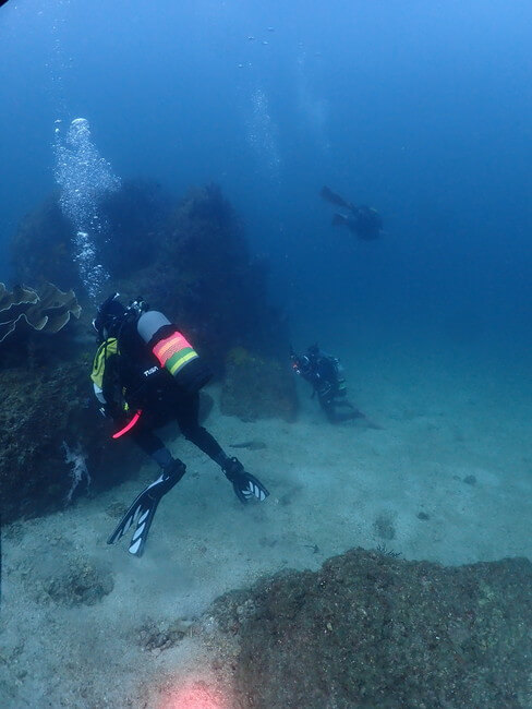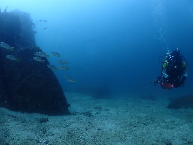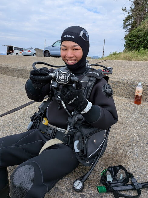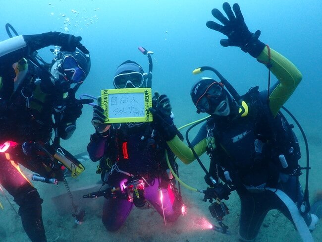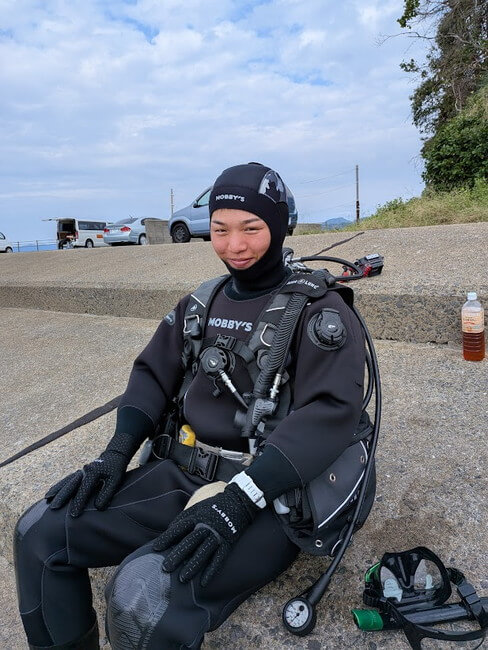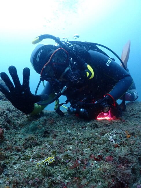 ウミウシは深場に多いので、ウミウシチームはこけしから強制的にエンリッチタンクをレンタルさせられました。