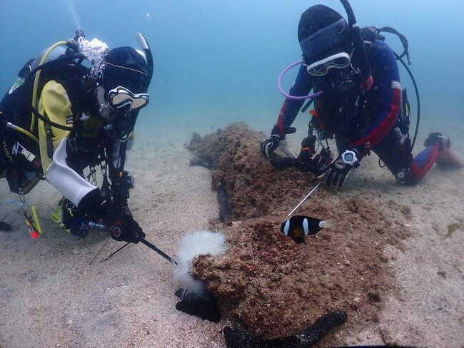 サンゴの中のエビやカニを見つけるとちょっと嬉しいし、