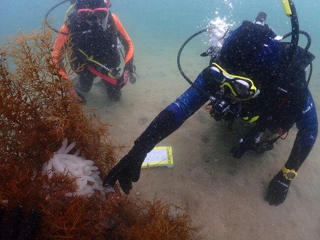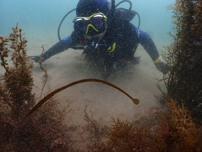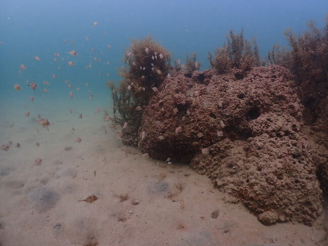 アオリイカの産み付けられたばかりの卵があったりと、何だか季節感の薄い水中。