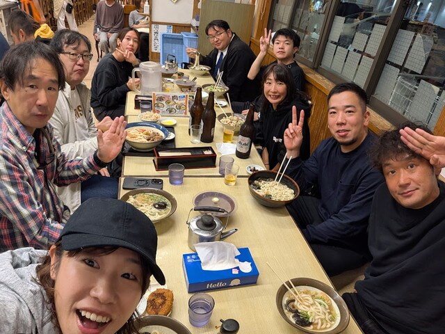 そんな様子をしばし観察していたらお腹も減ってきたので、とっくんオススメ唐津の牧のうどんへ。