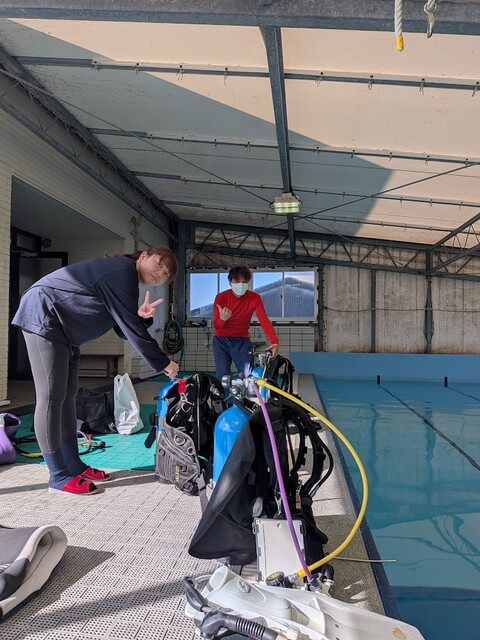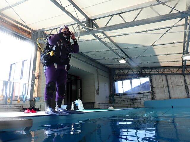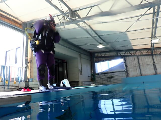 オープンウォーターの限定水域講習を海で実施しているうみんぐは何気に初めてのプール。