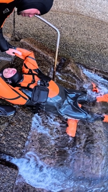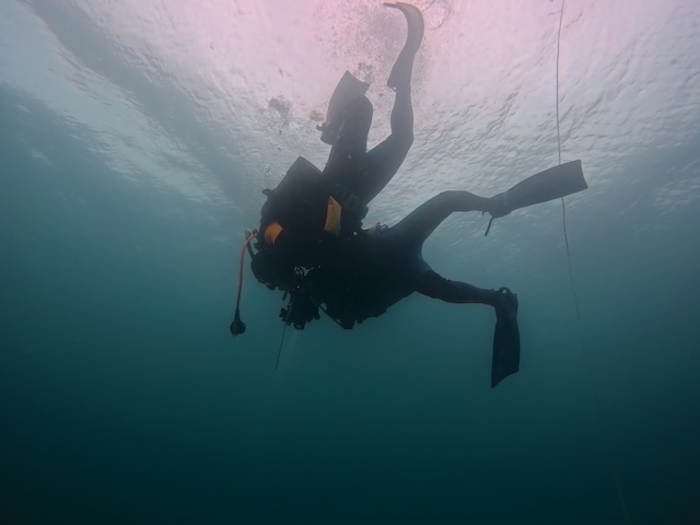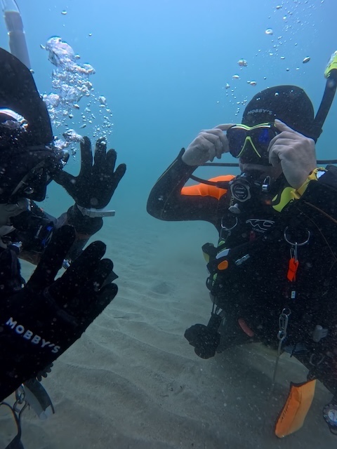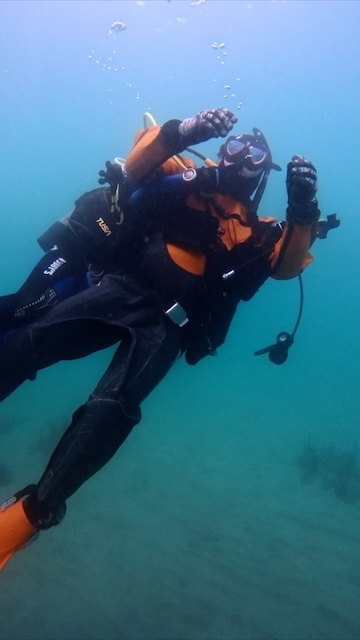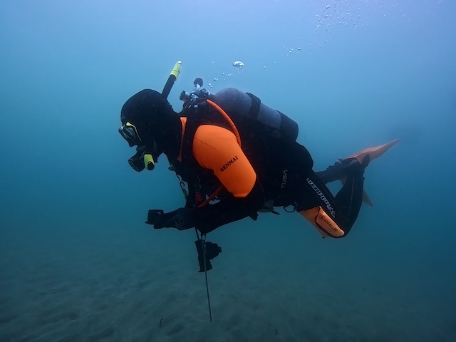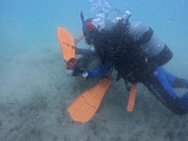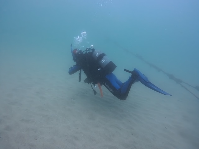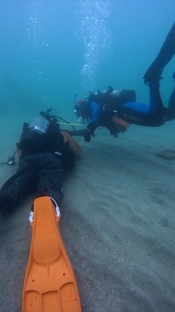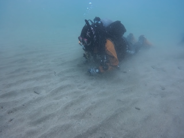 こちらは、アマチュアレスキュー事故者役のラムによる、砂巻き上げダイバー。
