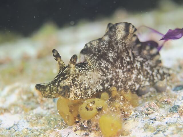 ミズタマウミウシとクロコソデウミウシを足して割ったようなコソデウミウシも見られました。