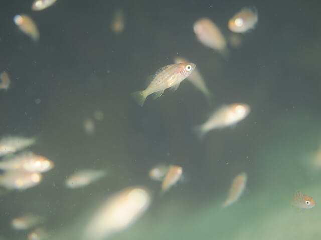 謎の稚魚たちの群れは相変わらずあちこちに。