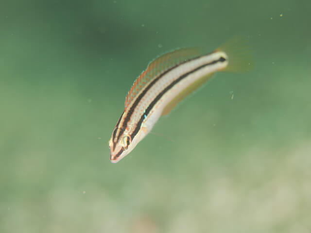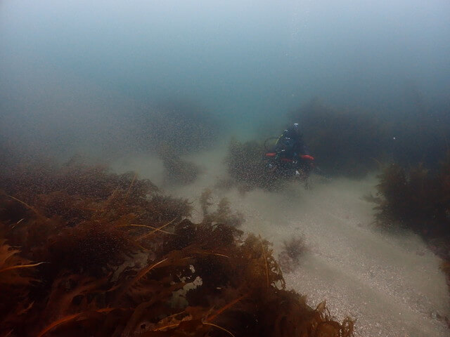 水温はまだ15℃と低く、透視度は4mほど。