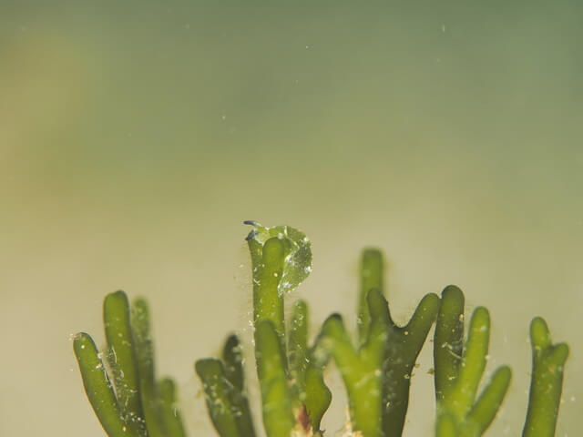 ミルを餌とするクロミドリガイに