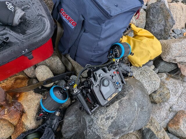 雨の中ハウジングを開けてキャップを外す作業はなかなかリスキーでしたが、無事にセット完了し、気を取り直して再び海へ。