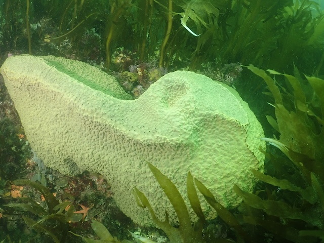 途中、巨大カイメンを発見しました。水深6m。