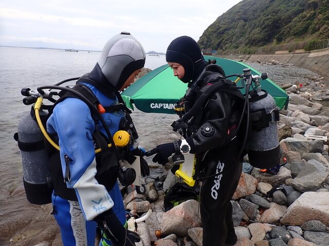 PADIアドバンス講習2日目のコウイカちゃんとPADIダイブマスター講習中盤のアサガオちゃんと少人数で志賀島にやってきました。