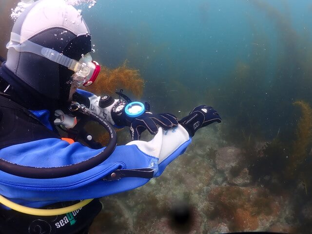 普段から体を動かすのが好きなコウイカちゃん、海の中でもぐいぐいフィンを蹴って泳ぐのが気持ち良くて楽しかったんだそう。