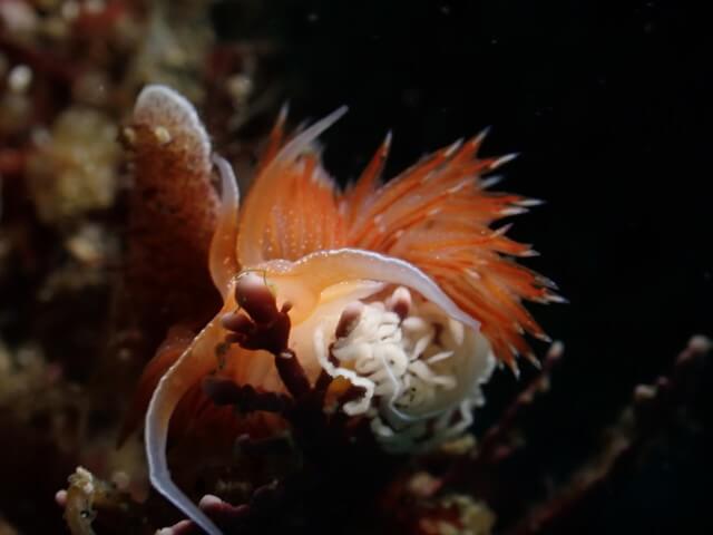 アカエラミノウミウシの産卵。