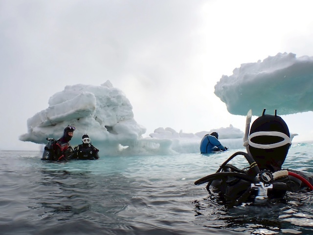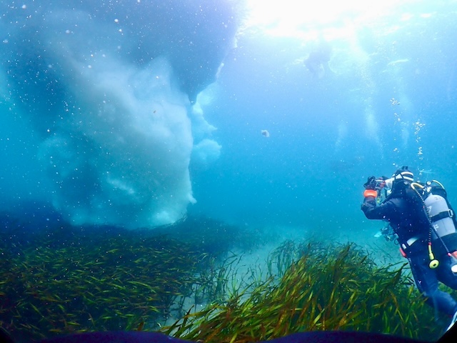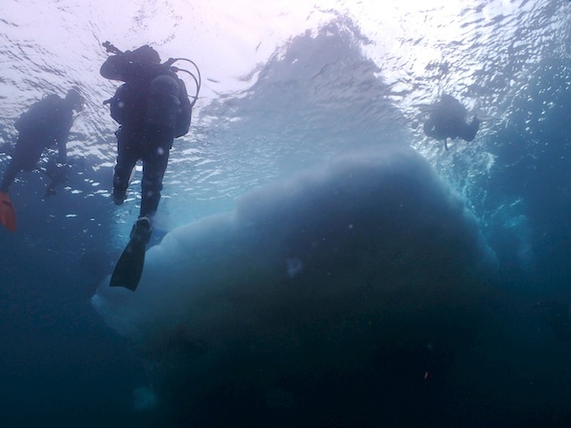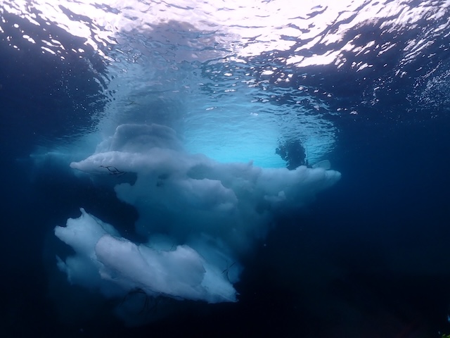 この流氷の周りを安全に潜り、景観を楽しみ、撮影するのが1本目の課題。