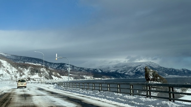 羅臼国後展望塔へは車で坂のカーブをのぼっていくので、福岡の人は抵抗あると思います。