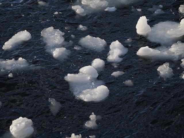 鳥たちが魚をとっている海面を見ると、バラバラ流氷が浮いていました。