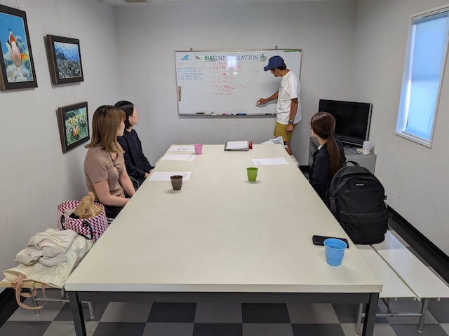 素潜り基礎コースのスタートは、学科講習1時間30分。