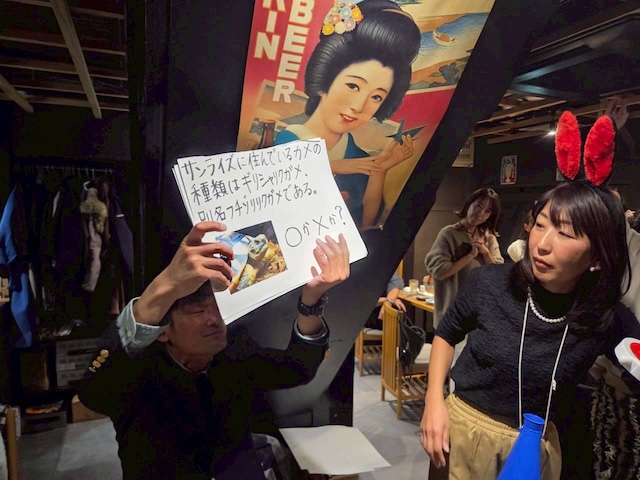 忘年会恒例のマルバツクイズを先にスタートしました。