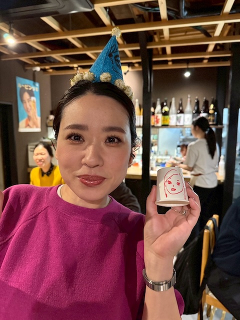 忘年会から参加の方も店長似顔絵席次カップをプレゼント。